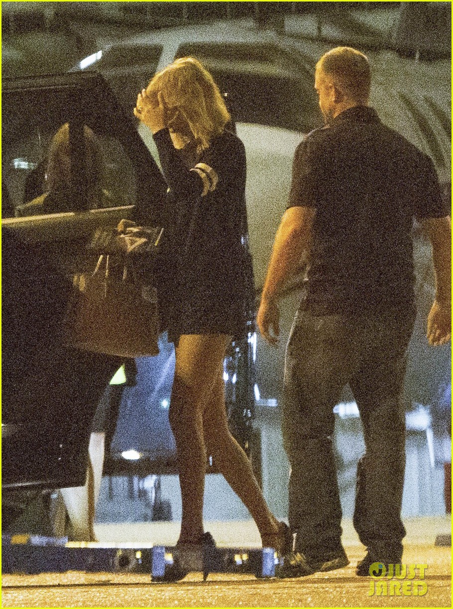 In the pap shot of Taylor coming off the plane, it looks like the book or script she is carrying has a picture of a woman who is wearing a black skirt or shorts reclining backwards with her right leg bent and knee raised.