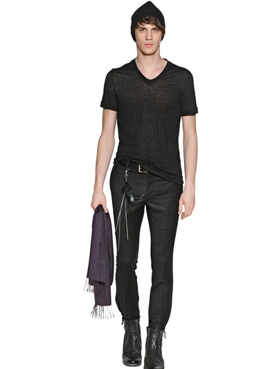 John Varvatos - V-NECK LINEN JERSEY T-SHIRT