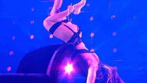 What the **** is Granny Lopez trying to do?! She's going to break her hip and knees in one swift move, her menopausal old self needs to stop it.