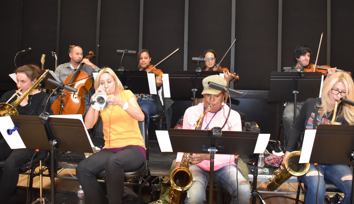 @nilerodgers @ladygaga Half of our Bowie Tribute sweetening section for @TheGRAMMYs Thanks for your AMAZING playing