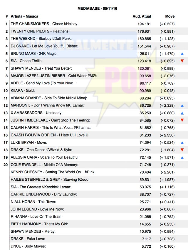 7 10 MAJOR LAZER Cold Water f/Justin Bieber, M 3753 4224 -471 23.641