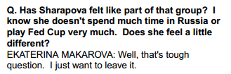 This Makarova ungrateful bitch (and i like her) Besides Myskina (not really familiar) she's better than all those Russians lol, yeah bitch, you better leave it