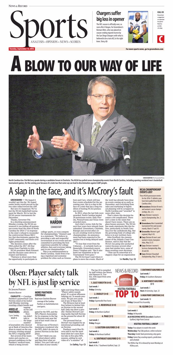 Local newspapers have had it with McCrory costing the state millions: