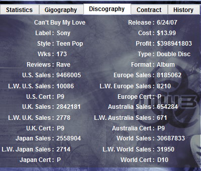 my first artist had a very decent rep in the uk and asia, so her 3 singles and 1 album sold well there, and i went from -900k to 12m+ thanks to the sales