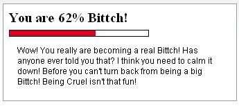 Well about half way there to becoming a full out Bittch! It won't be long now! I think you have a little devil and little angel in you! Right now there are fighting! Maybe the devil will win and you will be a big Bittch!