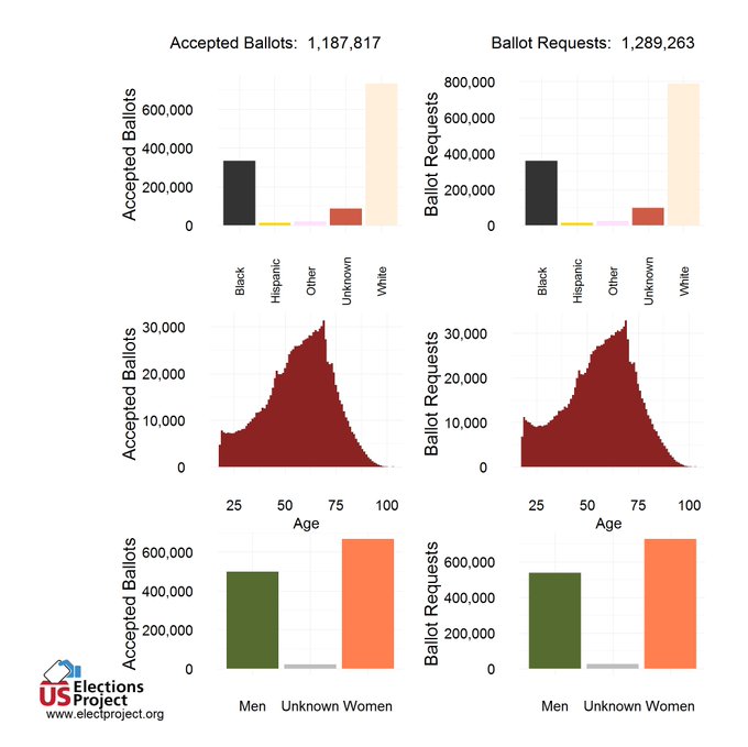 Georgia and gender: @ElectProject there are more women and they vote at a higher rate than men. Still seeing slightly higher percentage of women in Georgia than 2012, tho