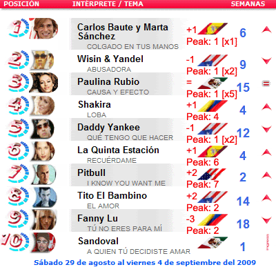 Chart News: Los 10 Primeros De Ritmoson LATINO (2009)
