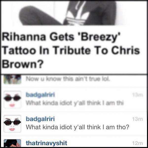 I just heard on the radio Capital FM that Rihanna allegedly had a new tattoo earlier this week. The tattoo is the word Breezy.