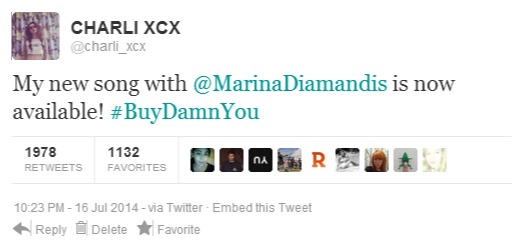 A follow up of their duet "Just Desserts", which premiered last year while the two toured with each other, "Damn You" tells the story of a girl who wants to kill her ex boyfriend. The track is similar to Charli's song "You're The One" fused together with Marina's "Power & Control". The song has a haunting intro as Marina & Charli sing "oooooh"s and an even more haunting outro, where the two laugh and hum in a psychedelic downfall of the song's instrumental.