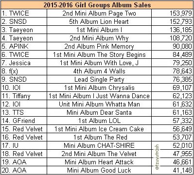 Best selling girl group albums of the past two years.