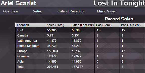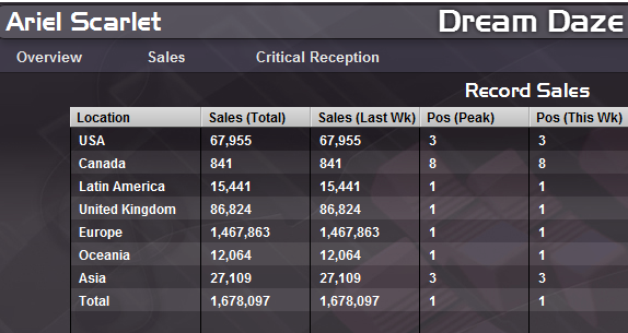 "Sweet Fantasy" sales breakdown