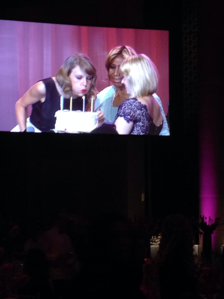 "Being named Billboard Woman of the Year for a second time is this amazing early birthday present," Swift said in her opening remarks. "I turn 25 at midnight tonight, and I fully intend to to celebrate like it's 1989." After only polite audience laughter, she added, "I knew it was a bad joke when i wrote it, and I just did it anyway!"