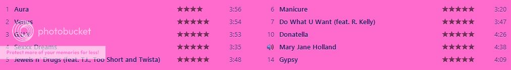 #13 on iTunes. Hopefully it'll be in the top 10 in a few days time. It would have been if she had chosen the better songs on the album (Gypsy, Fashion!, G.U.Y., Sexxx Dreams or Donatella) as promo singles.