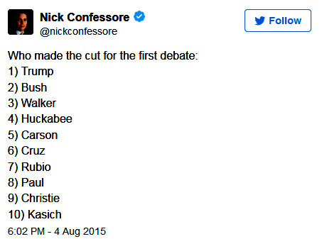 1st Primetime Debate Participants - FOX, 9 pm, August 6th.
