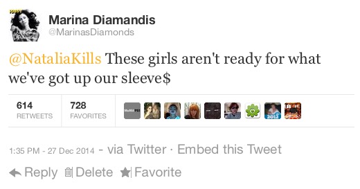 Y'all girls getting Diplo on your album when you should know damn well thats Marina's boo