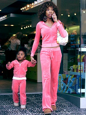 In both of these pictures, there appears to be a Brandy and also a female child. Both look the same, and in each picture the child is wearing pink. These are also said to be from the same day. If the rumors are true that Brandy are two different people, then could the child be copying herself also?