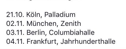 Just found out through the event sale website in Switzerland that they will be in Zurich on October 30, 2016 playing at the Hallenstadion. That's 13,000 seats and it's where all the big tours stop. That's a Sunday and Selena Gomez's Revival Tour is the night before in the same venue, and I'm going. A big weekend coming up for me.