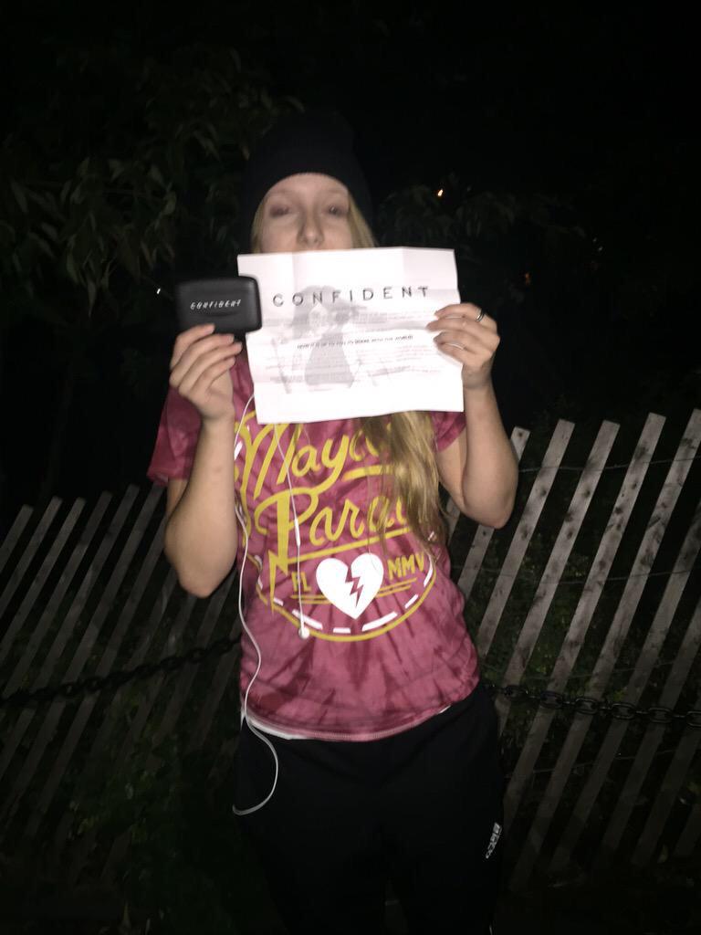 The girl said she's going to get her laptop from home and bring it back to the park so the other Lovatics can watch it with her.