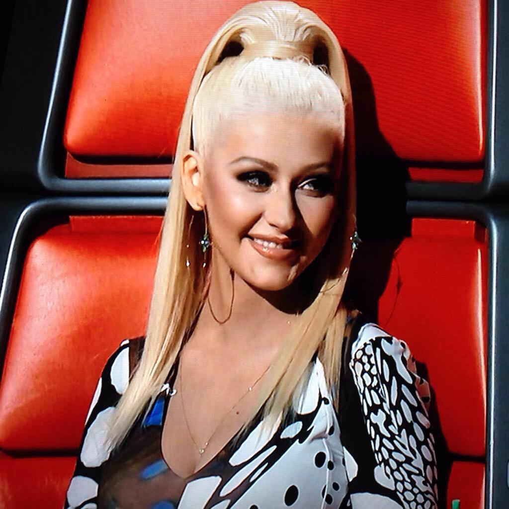 Tonight for the first live show Christina's hair was completely back off the face, so I kept the makeup glowy with a contoured eye socket, using the Kristofer Buckle "day to night" palette. Lots of lash and her signature red glossy lip ("blue red” by LipSense). It's a modern approach to the look we did for her Bionic album.